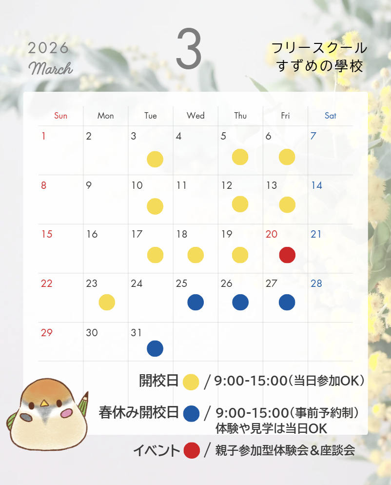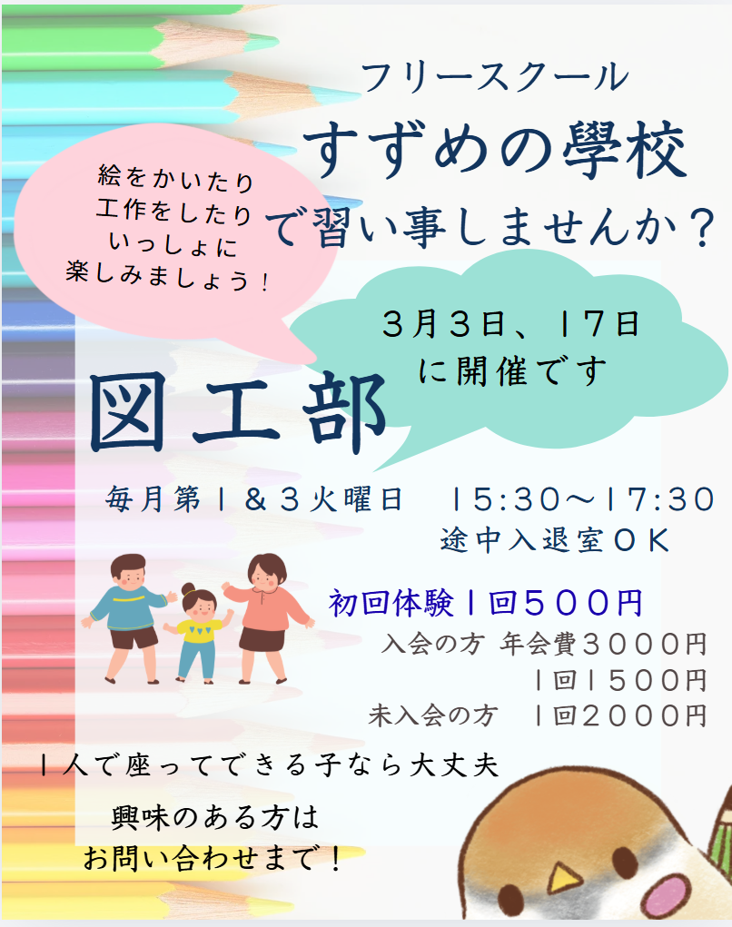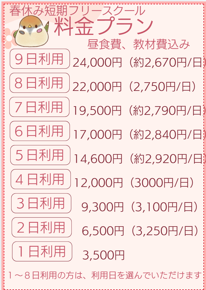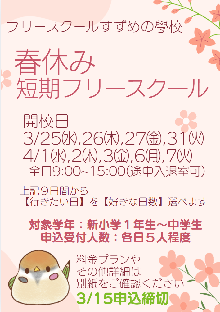 春休み中は、”短期フリースクール”として開校させていただきます